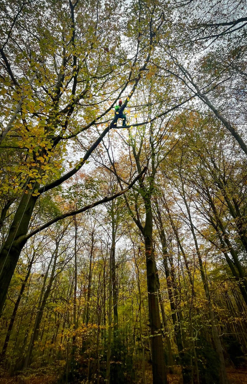 Wenn der Standort aber auch den Einsatz der Hubarbeitsbühne nicht zulässt, weil zum Beispiel keine Zugangsmöglichkeit oder ein Aufstellort vorhanden ist, bleibt nur die Seilklettertechnik - unterstütze Fällung.